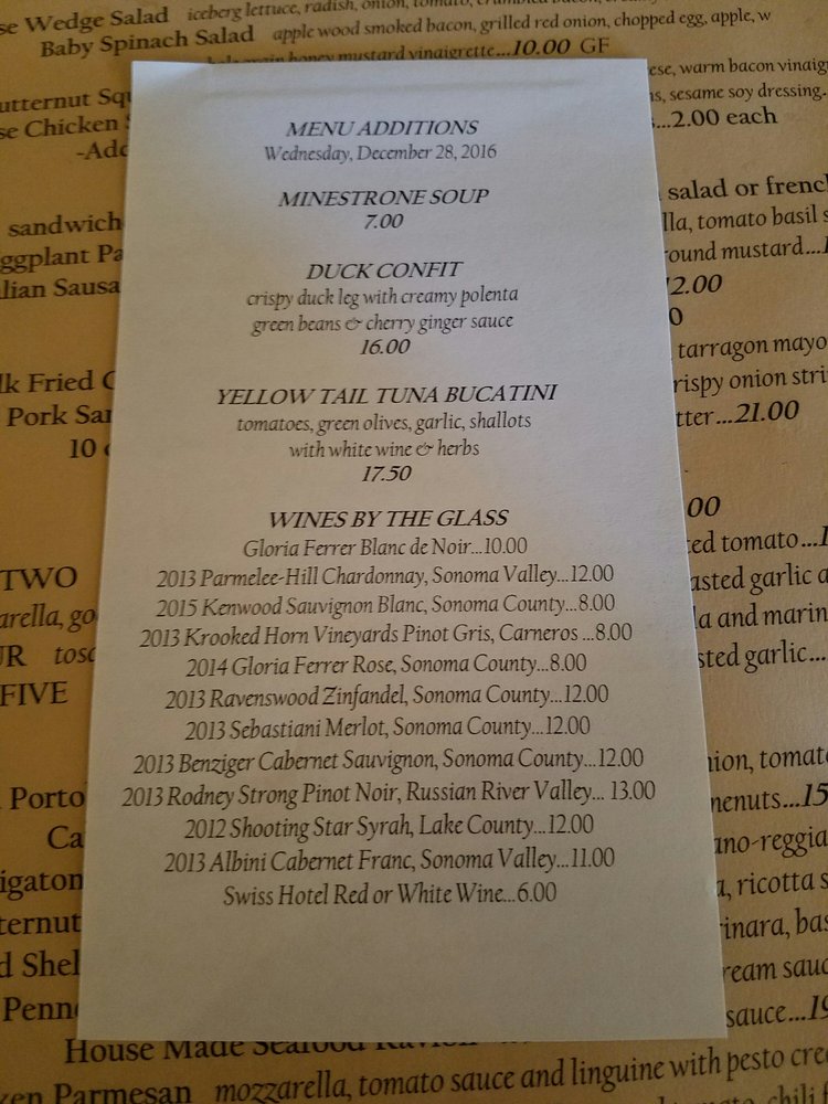 Introducing Swiss Bar & Restaurant, located in Sonoma, CA, offering a variety of delectable dishes and a charming ambiance. With a menu that caters to vegetarians and meat lovers alike, this restaurant provides a classy yet casual dining experience. Customers rave about the delicious Italian dishes, such as burrata and meat lovers pizza, as well as the signature Glarafee cocktail. The attentive and accommodating service adds to the overall dining experience, making it a perfect spot for a date night or gathering with friends. The outdoor patio setting, complete with heaters and covered seating, ensures a pleasant dining experience even on cooler nights. Swiss Bar & Restaurant truly stands out as a hidden gem in Sonoma, offering great value for the quality of food and service provided. Experience the delightful flavors and welcoming atmosphere of Swiss Bar & Restaurant for yourself.
